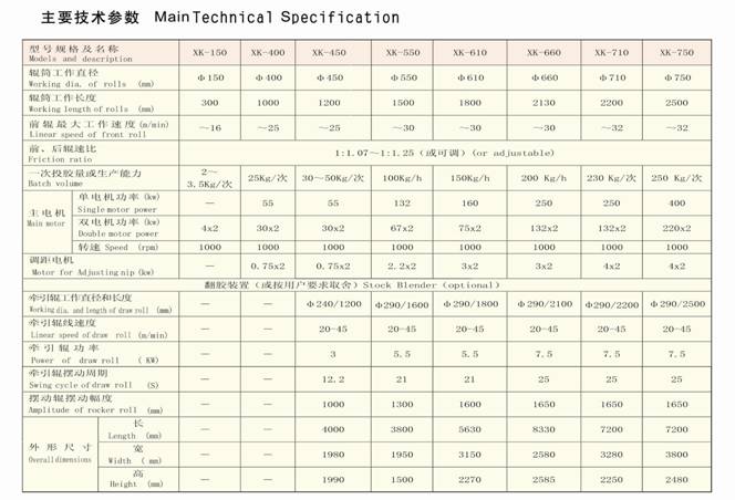 用于橡胶的热炼、塑炼、混炼和压片。
