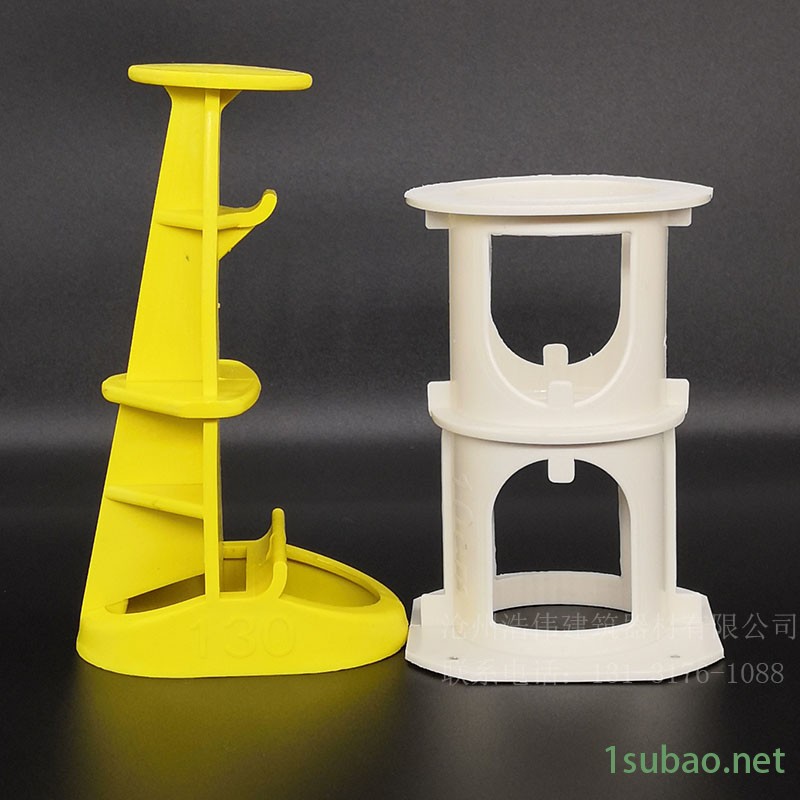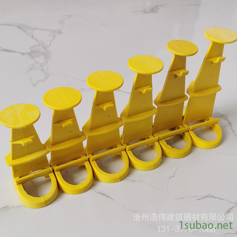 成品楼板厚度控制器:塑料制品,高度同楼板厚度,可固定于模板上。