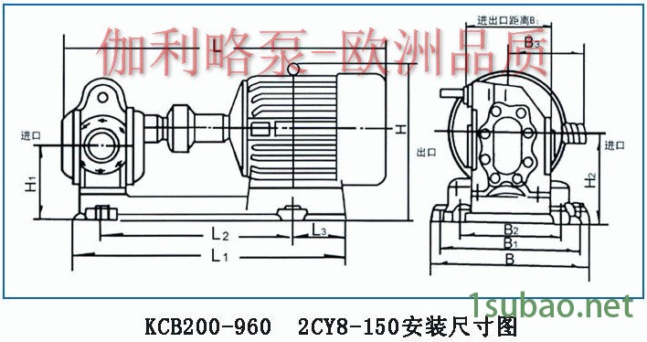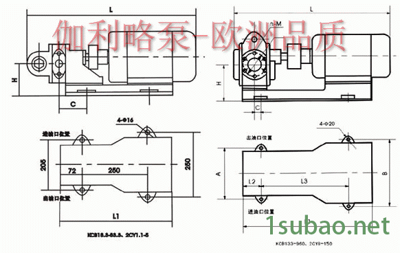 【KCB/2CY型齿轮油泵】安装尺寸图: