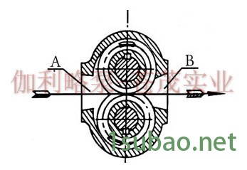 2CY、KCB齿轮式输油泵在泵体中装有一对回转齿轮,一个主动,一个被动,依靠两齿轮的相互啮合,把泵内的整个工作腔分两个独立的部分。A为入吸腔,B为排出腔。泵运转时主动齿轮带动被动齿轮旋转,当齿化从啮合到脱开时在吸入侧(A)就形成局部真空,液体被吸入。被吸入的液体充满齿轮的各个齿谷而带到排出侧(B),齿轮进入啮合时液体被挤出,形成高压液体并经泵的排出口排出泵外。