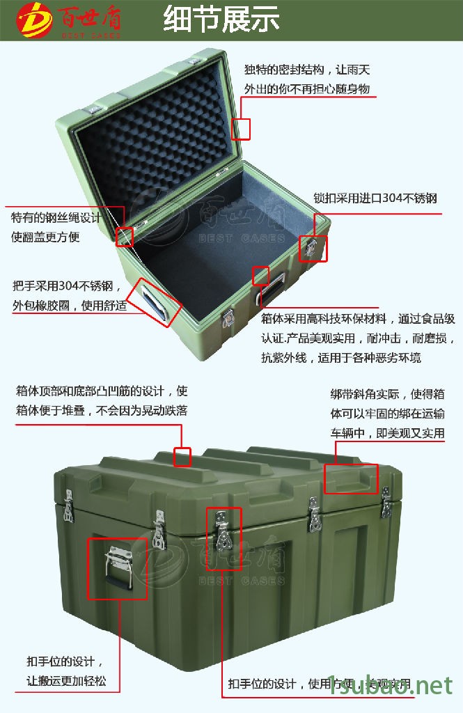 2、采用滚塑工艺一次成型,坚固耐用,可空投不怕摔碰;