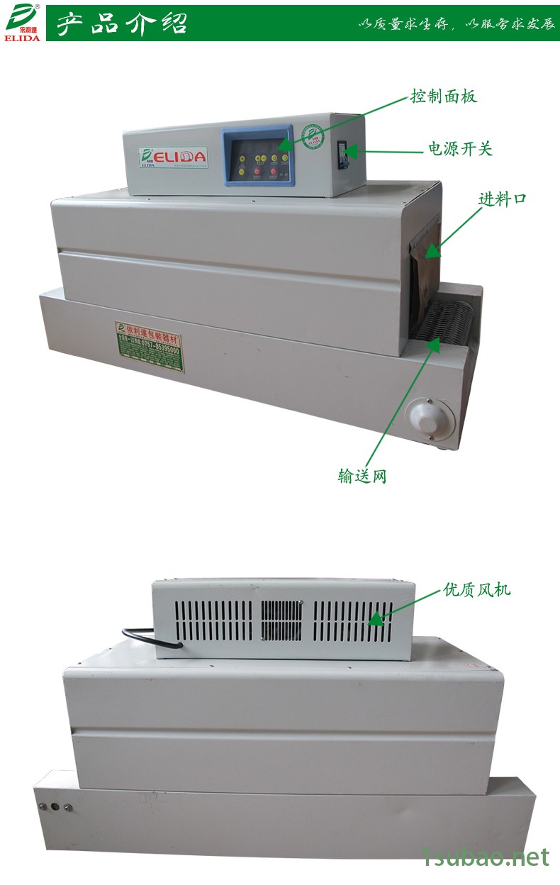 “依利达ELIDA”ELD-2615W内循环式热收缩包装机,只适用于PVC膜收缩包装膜/PVC热收缩袋效果为佳。触摸与数显式操作面板、各功能及数据集成统一操控;控制系统采用数字化编程、有效提高关键器件的使用年限;独到的设计使各负载设有过流、过压、缺相、错线保护功能;