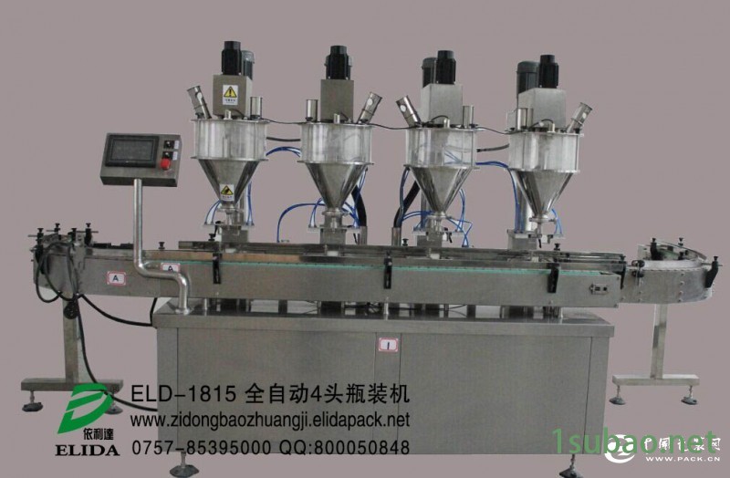 依利达ELD-1815 全自动4头瓶装机|广州制药厂四头全自动瓶装包装机|南昌抚州食品无人化粉剂装瓶流水线|上海南京*品自动化粉末状定量灌装机|武汉仙桃*超细粉计量充填包装设备|鹰潭宜春全自动瓶装灌装充填包装机械:采用螺旋充填机充填,采用伺服、分度盘定位系统、触摸屏显示,PLC控制,包装精度和速度得到提高。适应包装各种粉末状、超细粉的物料。专利螺杆,可解决充填过程中的粉尘问题。
