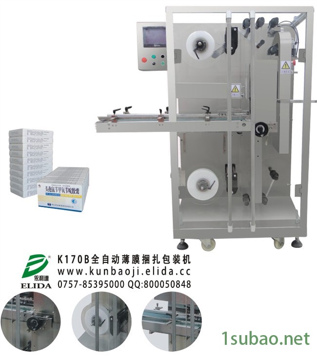 依利达K170B全自动薄膜捆扎包装机是代替热收缩的新型包装产品,利用普通薄膜(PE)进行叠加包装、捆扎成型(用多个单盒产品用薄膜带组合捆包),外观简单整齐,节约原材料,深得广大药厂、食品厂认可。以上众多系列产品能满足不同行业的需求,广泛适用于医药、*、医疗*、日用化工、饮料、食品、乳制品、*、五金等行业。包装机以其设计新颖,结构合理,性能稳定可靠、封切准确,包装效果好,长久耐用,并具有节能功效等特点而赢得了广大用户的信赖和好评。