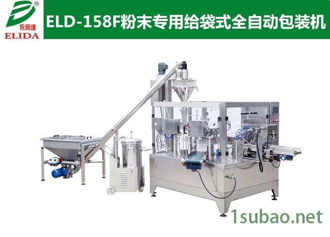 依利达ELIDA品牌 ELD-158F粉末专用给袋式全自动包装机(福建泉州奶粉给袋式包装机组 晋江咖啡粉全自动给袋式包装机 惠州调味品预制袋全自动包装机 广东珠海中山江门添加剂全自动预制袋包装机械设备)这套设备主要由给袋式全自动包装机与螺杆称配套而成,适用于奶粉,咖啡粉,添加剂等粉末物料的自动计量包装机。