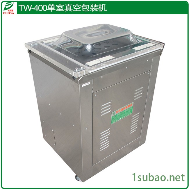 依利达TW-400不锈钢单室真空包装机(又称为深圳电子元器件电脑板真空机/珠海海鲜不锈钢型真空封口机/中山休闲食品落地式全自动真空包装机/东莞江门PC线路板真空封装机/广州佛山微晶真空包装设备):专为包装含水量大的产品而设计,采用日本控制线路,吸取国外同行业的先进技术经验,其电器方面采用微电脑控制器全程控制,它具有防水、防潮、故障率低、使用寿命长等优点,这些优点使该设备便于清洗**算用水直接冲洗也不会发生任何电器故障,架体采用国际标准食品用304不锈钢板,强度高,不易破损,它独特的倾斜台面设计,可以保证产品内的水份不流失,从而使产品的含水真空包装更易操作。
