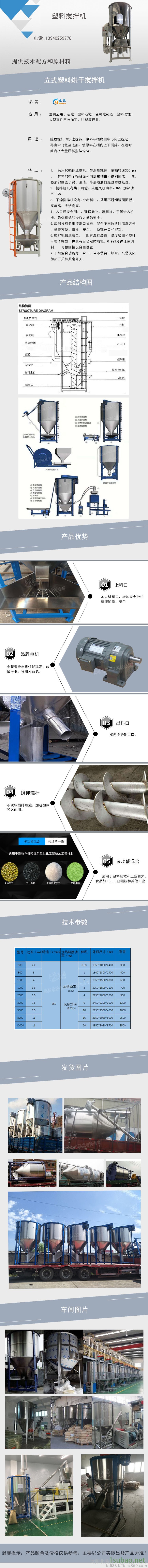 立式塑料搅拌机可用于熔喷布原料 、塑料片料、粉碎料,粉末料、塑料颗粒,塑胶新旧料及添加色母搅拌均匀等用途。适用客户:切粒、塑胶造料、色母制造、塑料改性、再生料回收加工、大件注塑等行业。
