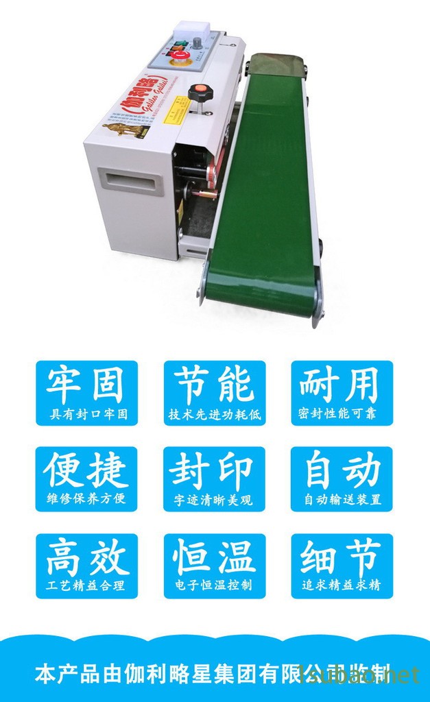 2、伽利略GFRD1000多功能墨轮印字封口机广泛应用于食品、医药、日用品、土特产、化工产品、电子产品、茶叶、化妆品、乳品、饮料、小五金、蔬菜种子、铝箔袋等产品。