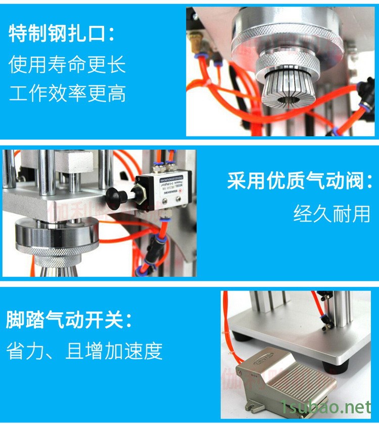 气动封口机是利用压缩空气作为动力,电器脉冲技术封口。使封口材料平整、挺刮、效果好。封口形状分为直线形、圆形、弧形、八字形、斜边形、不规则形等等。广泛用于铝塑复合膜、纸塑复合膜、PVC、PP、PE等热塑性塑料的制袋封口。气动封口机是一种新颖的气电一体化包装机械,是柔软物质、储存、产品防潮运输领域中不可缺少的必要手段。该机采用压缩空气作动力,封口压力可调,质量稳定可靠,可以手动或脚踏开关操作,轻便简易。在化工,粮食,食品,饲料等行业得到广泛应用。