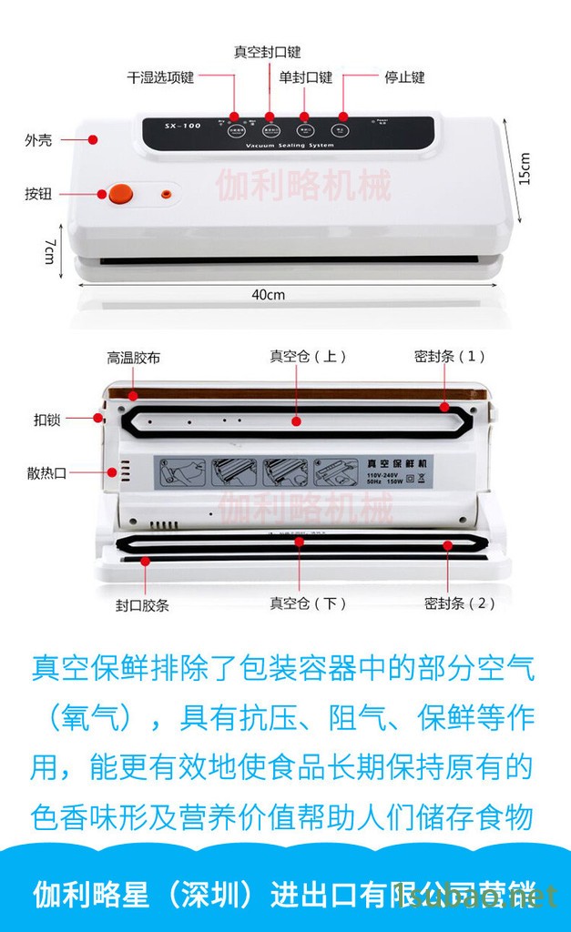 2.封口温度和封口时间调节范围广,适用于各种不同材质的真空包装。