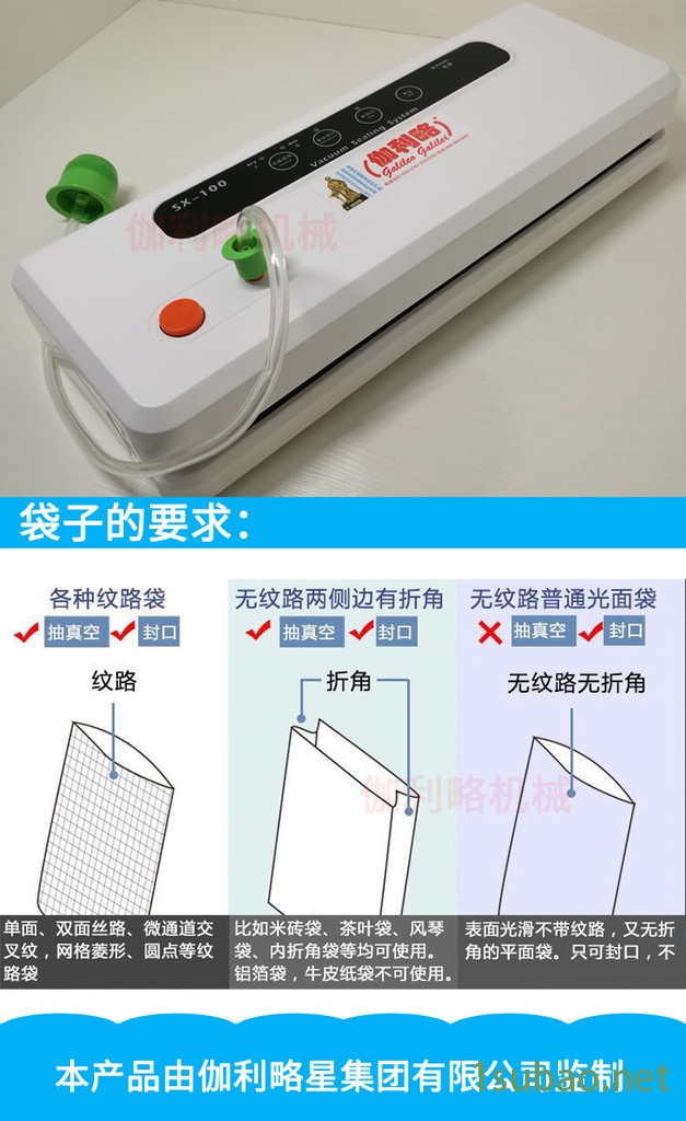 2.封口温度和封口时间调节范围广,适用于各种不同材质的真空包装。