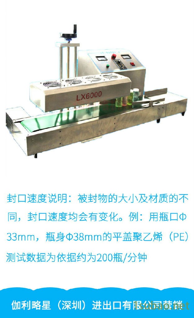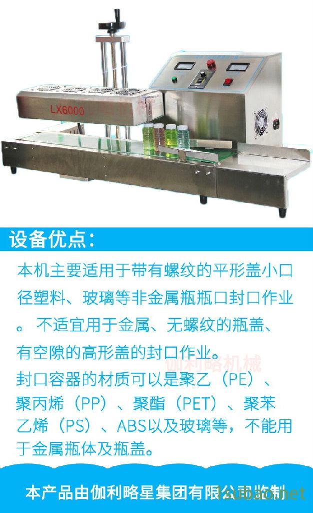GLGYF-1500A-I台式连续电磁感应封口机 加热铝塑复合材料的电磁感应密封技术不接触对象,具有先进性和在国内外广受欢迎。电磁感应封口机原理设计的是高质量的空气非金属瓶等塑料和玻璃瓶密封的必要设备,广泛应用于医药、农药、油脂、食品、健康食品、子、饮料、化妆品及化工领域。目的是为了促进产品的质量,加强密封和质量保护的能力。