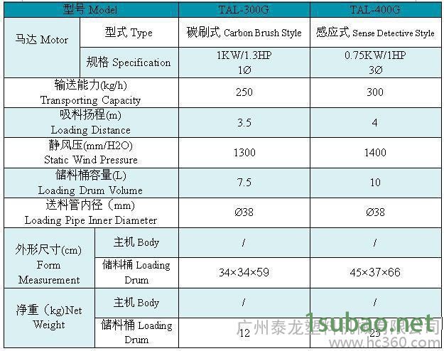 一体式吸料机详细参数表: