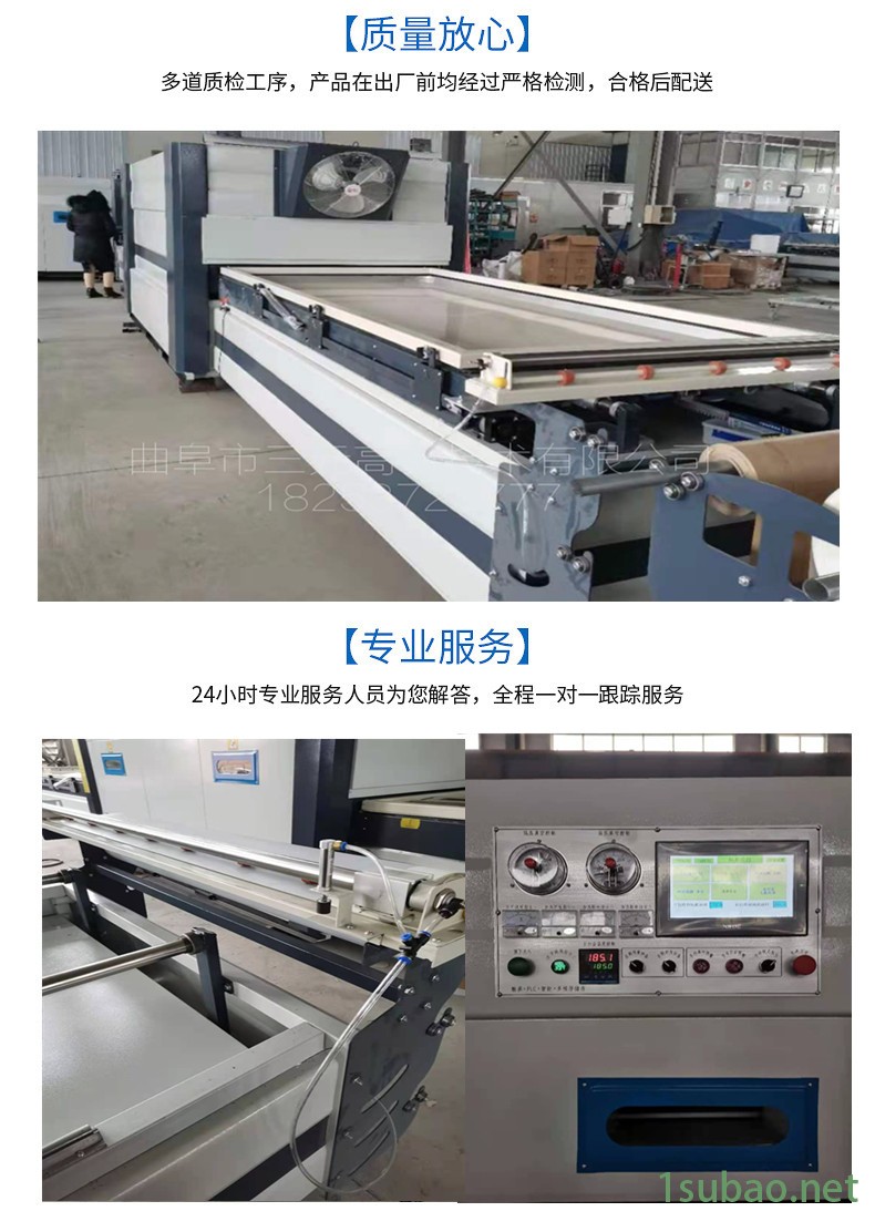3、提供整机一年保修服务。可根据客户要求设计和订做各种规格的真空覆膜机!