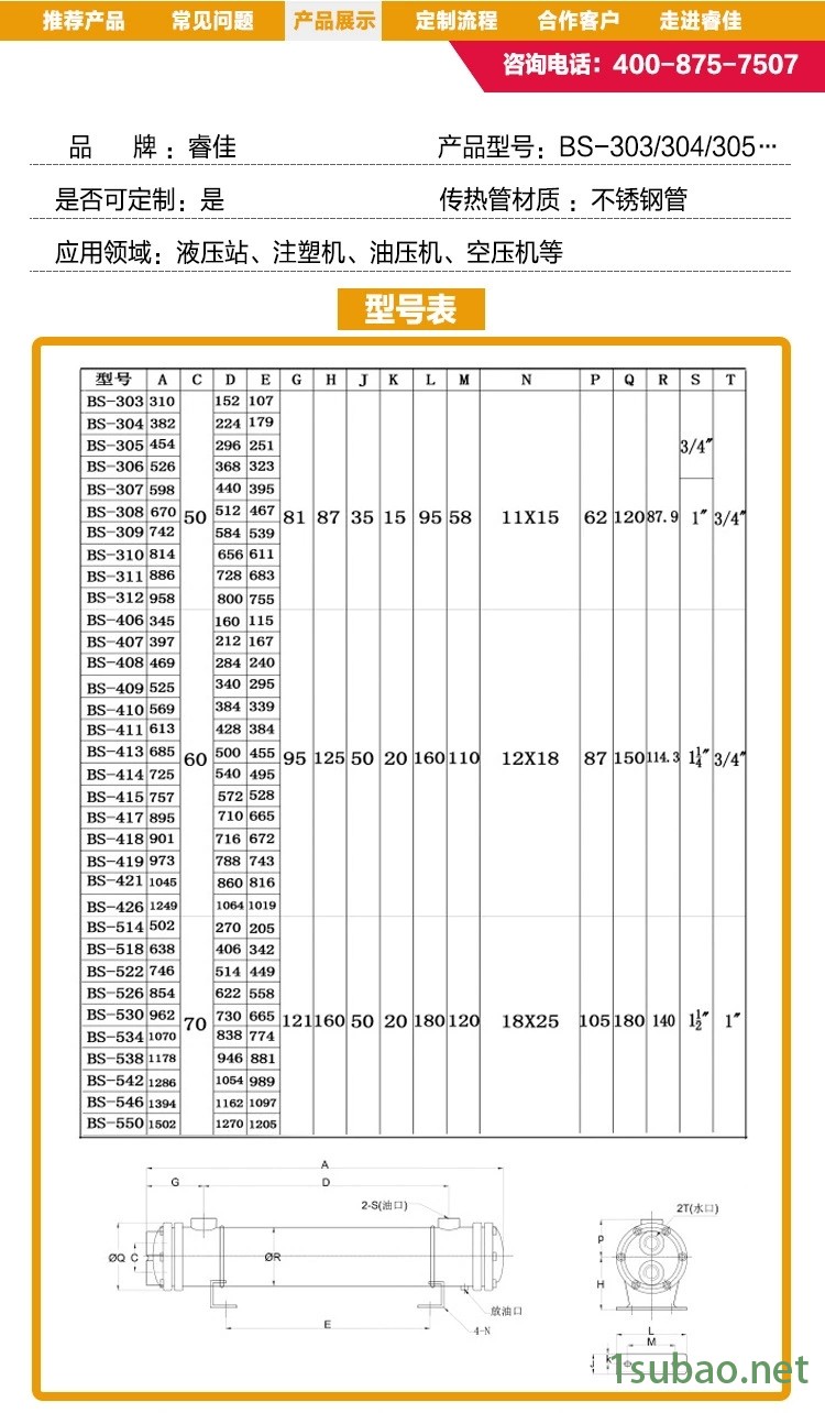 冲孔机油冷却器 压块机油冷却器 鞋机水冷却器 佛山睿佳BS-415 磨床油冷却器 不锈钢水冷却器厂家