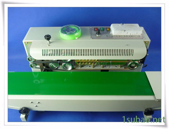 一般封口机由机架、减速调速传动机构,封口印字机构,输送装置及电器电子控制系统等部件组成。 接通电源,各机构开始工作,电热元件通电后加热,使上下加热块急剧升温,并通过温度控制系统调整到所需温度,压印轮转动,根据需要冷却系统开始冷却,输送带送转、并由调速装置调整到所需的速度。