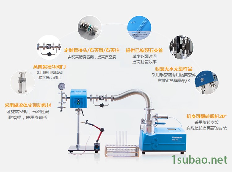 Partulab MRVS系列真空封管机+系统主要用于实现样品的无氧无水真空密封保存和高温固相合成,整套系统由真空封管机、氢氧机、分子泵机组、石英管、管接头等组成,标准化定制石英管和石英柱保证其与特殊设计的管接头匹配,从而进一步提升石英管封装的密封性,实现更高标准的真空封管。