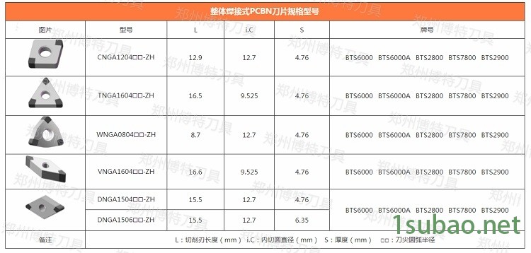 郑州博特材料专注于超硬刀具的研发制造,秉着为制造商提供原材料,为经销商提供产品,为用户提供服务的经营理念,为客户提供各种结构形式的PCBN刀片,包括整体烧结PCBN刀片、整体焊接PCBN刀片和复合焊接PCBN刀片,以满足各类加工环境需求。多种规格型号齐全,量大从优,欢迎咨询。