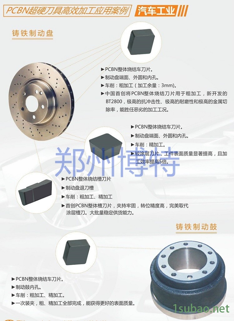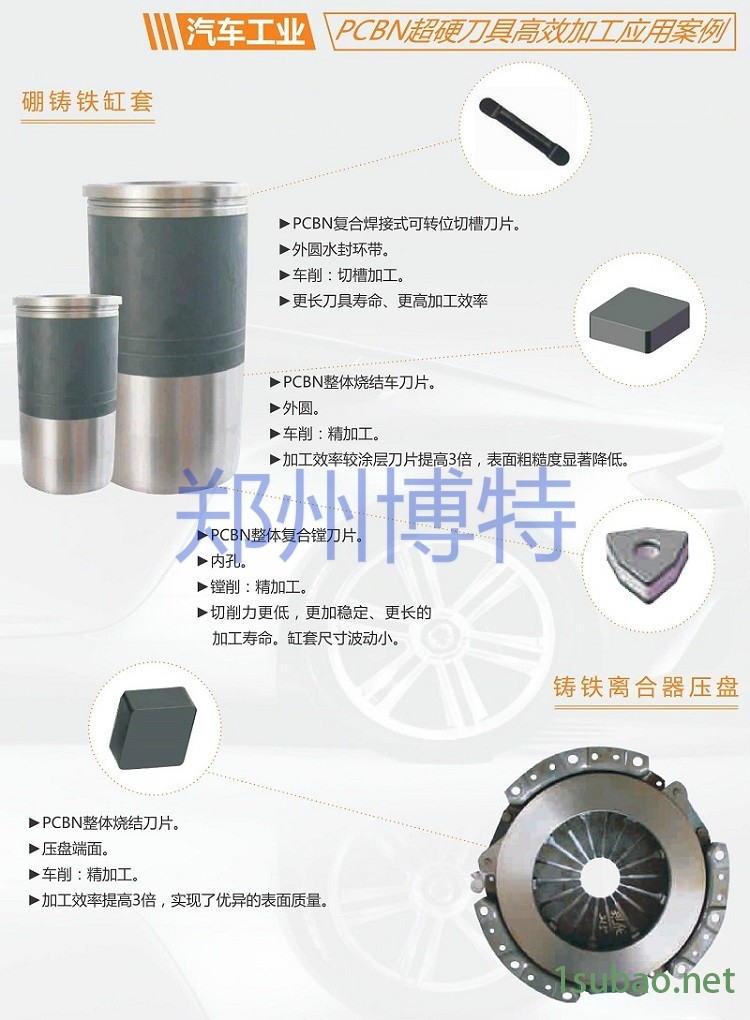 被加工材料:铸铁,硬钢,灰铸铁,高锰钢,淬火钢,高铬铸铁等。
