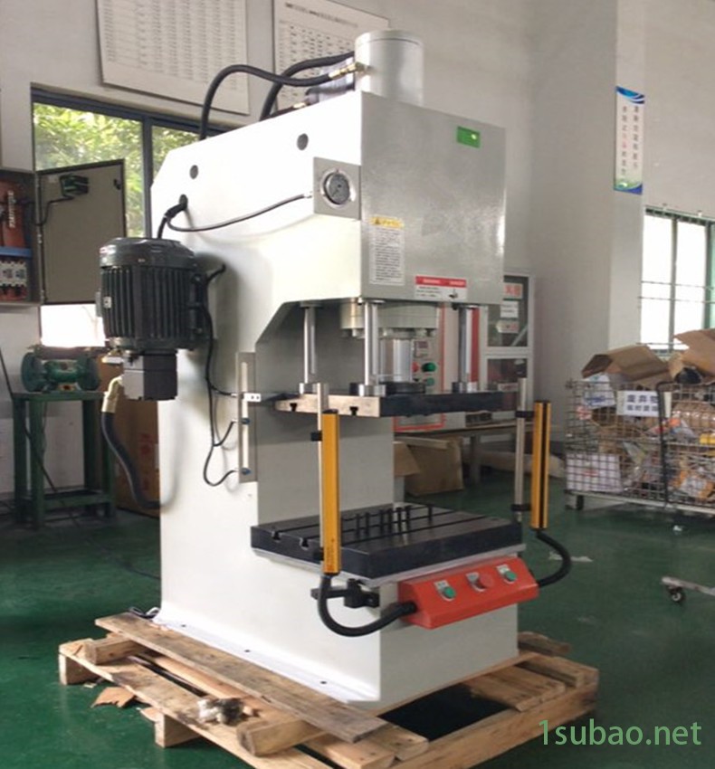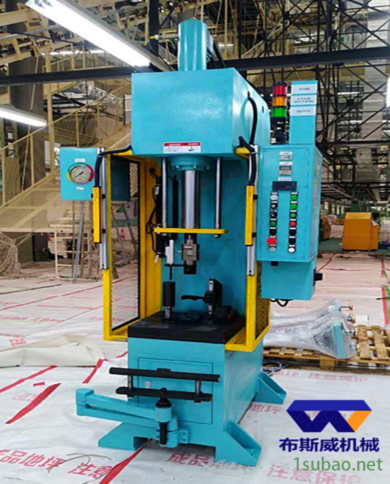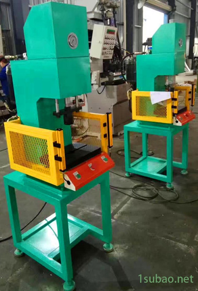 机身为C型单臂式结构,三面开放,方便操作,焊接后通过振动,回火处理,以保证机架 变形,主要用于各轴类压装,金属制品的浅拉升,成型及 ,以及零件的弯曲,压印,套形,是内燃机,轻纺机械,轴类,轴承,洗衣机,汽车电机,空调电机,电器,汽车零部件厂商的通用的小型压装设备