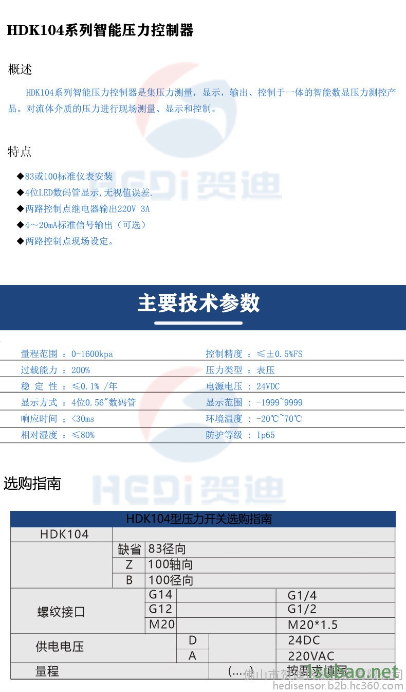贺迪桂林HDK104径向压力控制器广泛应用注塑机 液压机 油压等压力测量与控制