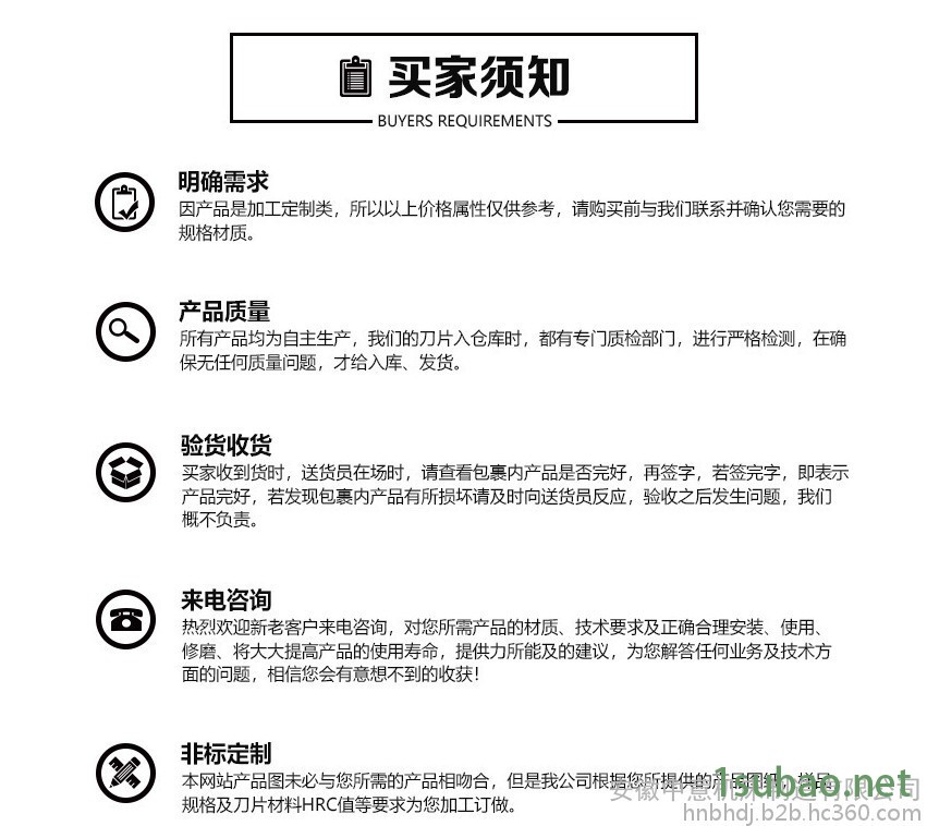 3:为了给您订做出所需要的产品,请您提供产品的规格,型号和机器的具体生产厂家,非标刀片产品还需要您提供图纸或样品。