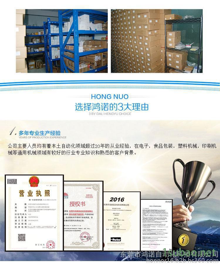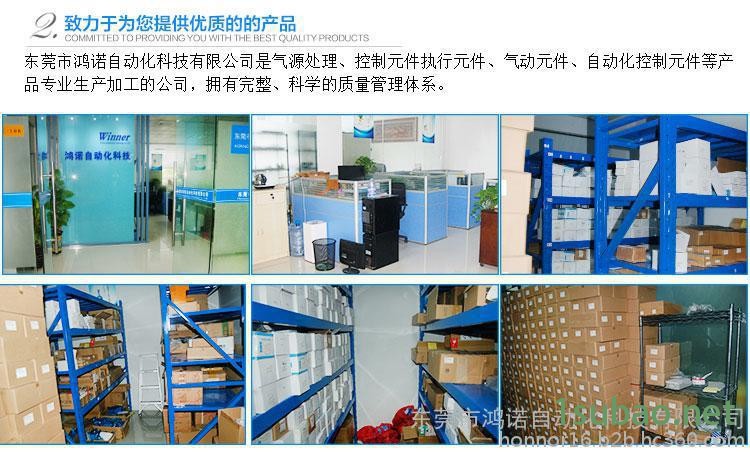东莞市鸿诺自动化科技有限公司是气源处理、控制元件、执行元件、气动元件、自动化控制元件、执行元件等产品专业生产加工的公司,拥有完整、科学的质量管理体系。东莞市鸿诺自动化科技有限公司的诚信、实力和产品质量获得业界的认可。欢迎各界朋友莅临参观、指导和业务洽谈。