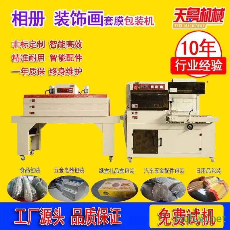 该包装机采用抗粘、耐高温、恒温式特级合金封切刀电气采用电脑(PLC)控制,人机界面操作,温度及制袋长度调整精度高, 且运行平稳可靠,广泛用于食品、牙刷、化妆品、电子产品及玩具的薄膜收缩包装。