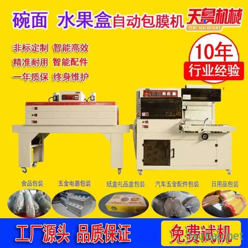 该包装机采用抗粘、耐高温、恒温式特级合金封切刀电气采用电脑(PLC)控制,人机界面操作,温度及制袋长度调整精度高, 且运行平稳可靠,广泛用于食品、牙刷、化妆品、电子产品及玩具的薄膜收缩包装。