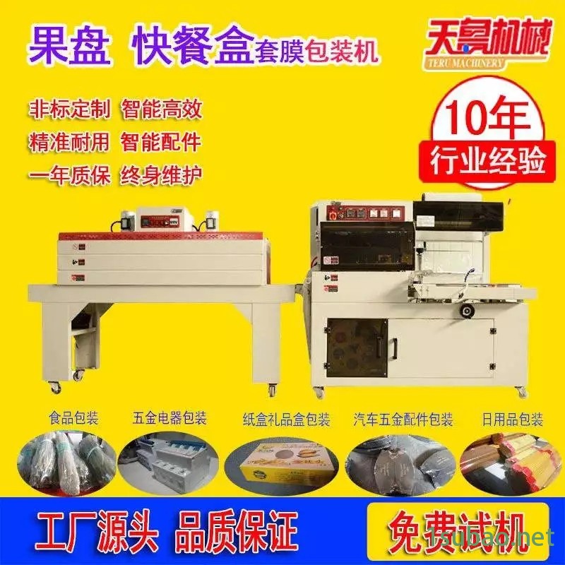 该包装机采用抗粘、耐高温、恒温式特级合金封切刀电气采用电脑(PLC)控制,人机界面操作,温度及制袋长度调整精度高, 且运行平稳可靠,广泛用于食品、牙刷、化妆品、电子产品及玩具的薄膜收缩包装。