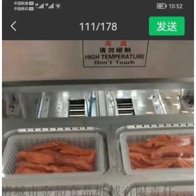 包装机 基 金超气调包装机基本介绍 自动塑盒封口机属于自动化塑料托盘盒封口设备,整机采用不锈钢304制造,结构简单合理,封口效率高,操作简便;适合于各种尺寸塑料盒,塑料托盘以及异形塑料容器的自动热合封口,广泛适用于制药、日化、食品等行业。 适用范围 金超气调包装机适用范围 自动塑盒封口机适用于快餐盒、熟食托盘、点心盒、方便食品、豆腐盒、饼干盒、外卖盒、豆瓣酱等盒状容器包装容器的自动热合封口。 金超气调包装机 技术参数