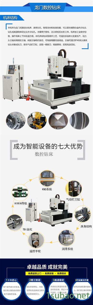 2、龙门数控钻床机床采用床身工作台固定,龙门移动的形式。