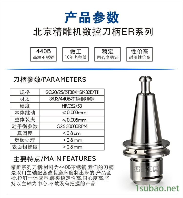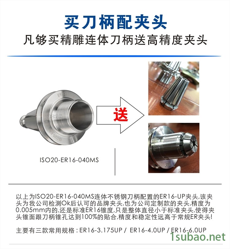 北京精雕机ISO20刀柄ISO20-ER16-040MS拉钉一体式不锈钢刀柄现货刀柄配送夹头5μ保证