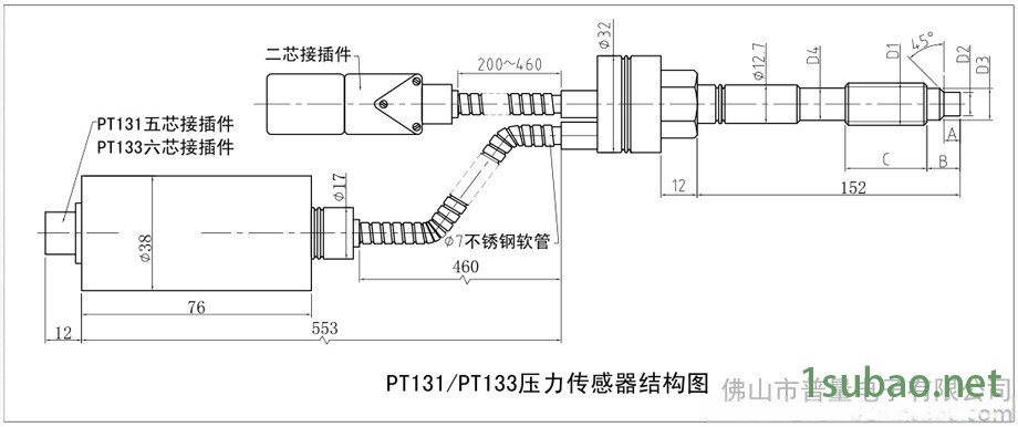 流延膜机压力变送器 挤出机械压力传感器 PVC PE PPR管材设备高温压力测量 PT131