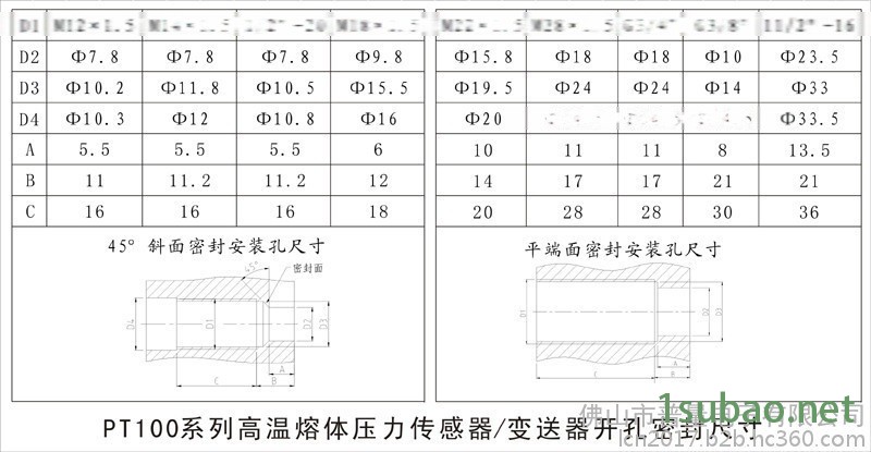 高温熔体压力变送器PT131/PT133齐平膜平设计,可同时测量温度达450度的高温熔体、流体压力和温度,压力输出模拟量2.0/3.3mV/V或4-20mA/0-10V,温度输出J、K、E热电偶,可配套普量电子公司的PY500/PY900仪表进行对挤出机、注塑机等的压力/温度控制,达到设备安全、产品质量保证的重要工具。