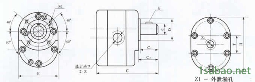 | 型号 | C1 | C1 | C3 | E | H | D(f8) | Φ | d(h7) | T | b | M | 2-Z(进出油口) | Z1/8" |
