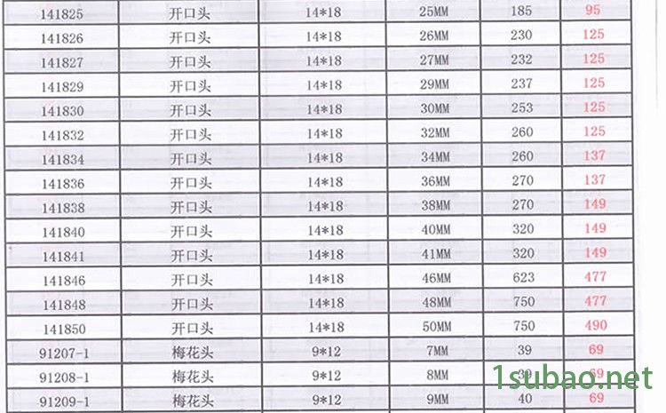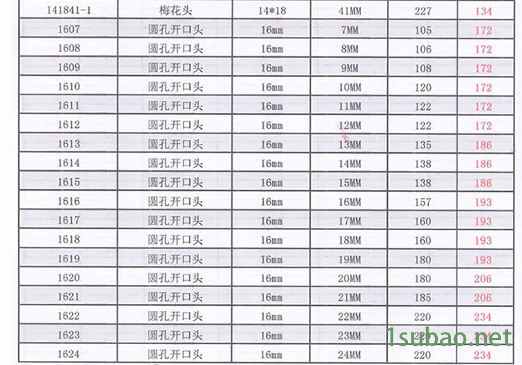 规格型号
