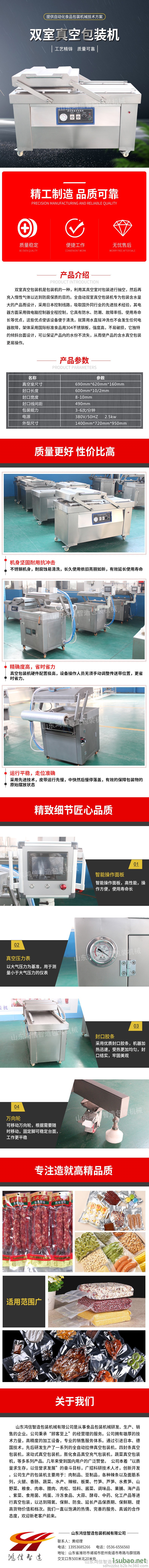 3、双室真空包装机**是把熟食食品放入包装袋内空气抽完,全自动包装机由于真空包装内产品真空度高有除氧的作用,达到食品的包装要求和保质期期限**行。