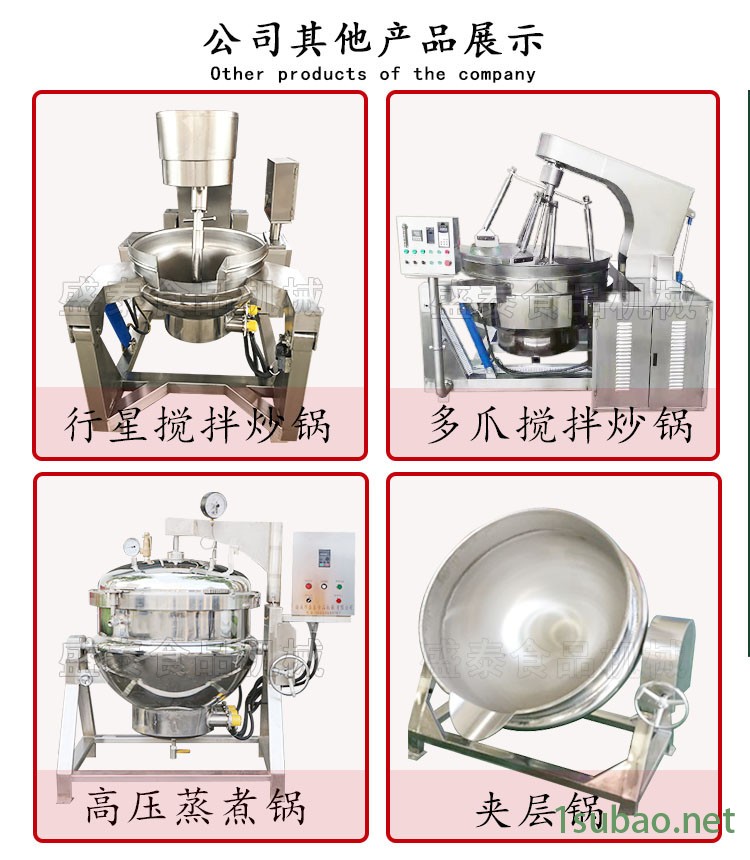 压榨机,夹层锅,搅拌炒锅,多爪炒锅,杀菌锅,高压蒸煮锅,拌馅机,真空包装机,真空滚揉…