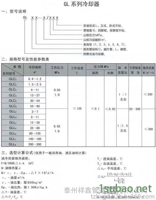我公司生产的冷却器,换热器有GLC、GLL、2LQFW、2LQFL、2LQF1W、2LQF6W、2LQGW、LC型系列油水冷却器,SL型螺旋导流板冷却器,LQG型船用冷却器,KL、FL型空气冷却器,AH,AW,AF,ACE系列风冷却器,BR0.05-BR2.0系列板式换热器、B3系列钎焊板式换热器,铝制冷却器其他各种非标换热器,特殊规格帮助设计安装,为用户提供所需参数。产品广泛应用于冶金、矿山、电力、机床、化工、压缩机、工程机械等行业中液压润滑系统和换热冷却系统,将工作介质(液压