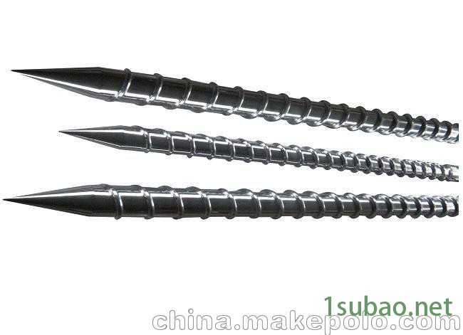 螺杆何用进口高合金钢全硬化处理,有效承受高扭力、高压力冲击,耐磨耗,表面电镀,耐腐蚀,平滑无孔隙以减少表面粘附的降解,细部结构精心处理,藏胶有效防止,低剪切设计,发热小。一般取中小直径,成型PC、BS+PC、PP-R、阻燃ABS等效果好。也可成型一般塑料及PMMA普通制品,但混色效果较差。如塑料中加色粉,需订做加强混色型螺杆 。