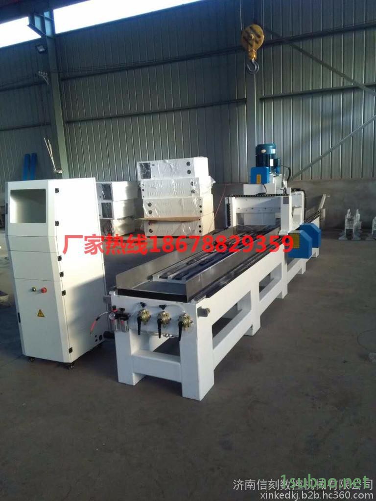 床身系焊接钢结构件,主架采用钢结构件加工,经人工时效热处理去除内应力后加工,动静刚性具佳,不变形。工作台面采用铸铁结构,精铣平整的工作台,用于装夹工件,也可配置气动式工装夹具,装夹工件更方便快捷。工作台**大承重1吨。床身左边上面跟侧面,垂直安装布置两条超高承载力的滚动直线导轨副和精密丝杠。驱动系采用AC伺服电机和精密丝杠驱动,使龙门作X轴方向移动。床身底面上分布有可调螺栓,可以方便地调整床身工作台的水平。