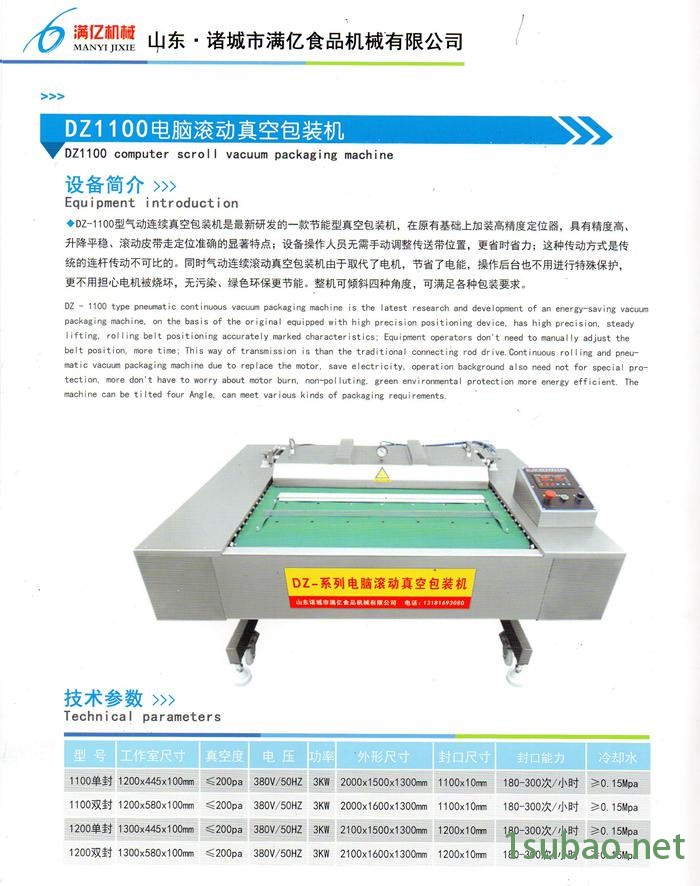 满亿DZ1100电脑滚动真空包装机 全自动气动连续真空包装封口机