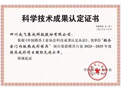 成飞集成铝合金门内板热成形模具项目荣获“国际先进水平”称号