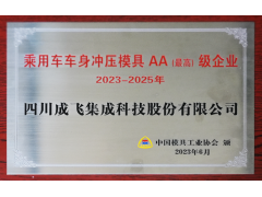 成飞集成获评乘用车车身冲压模具AA(最高)级企业