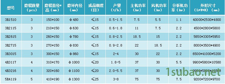 | 粉碎程度 | 超细磨机 |