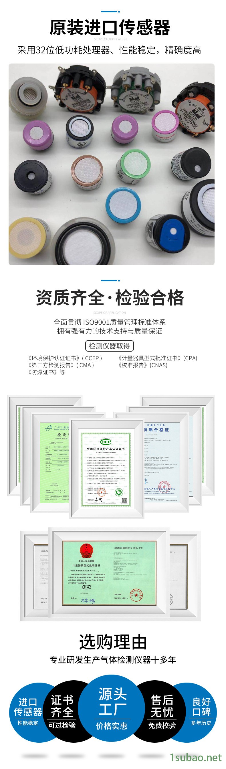 | 量程 | 0-10ppm、50ppm、100ppm、500ppm、1000ppm |