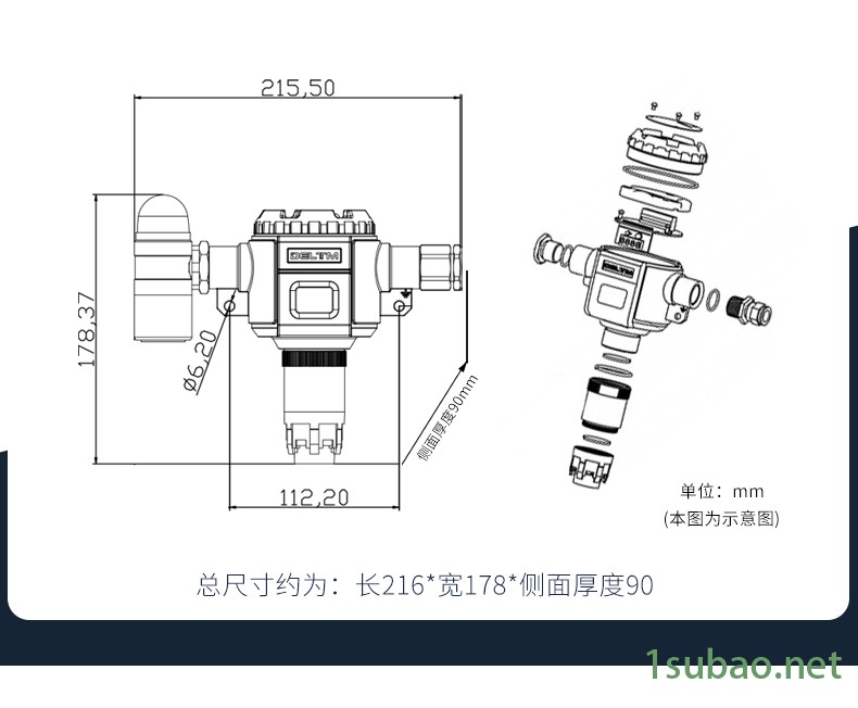 | 外形尺寸 | 169×172×90mm(长x宽x高) |
