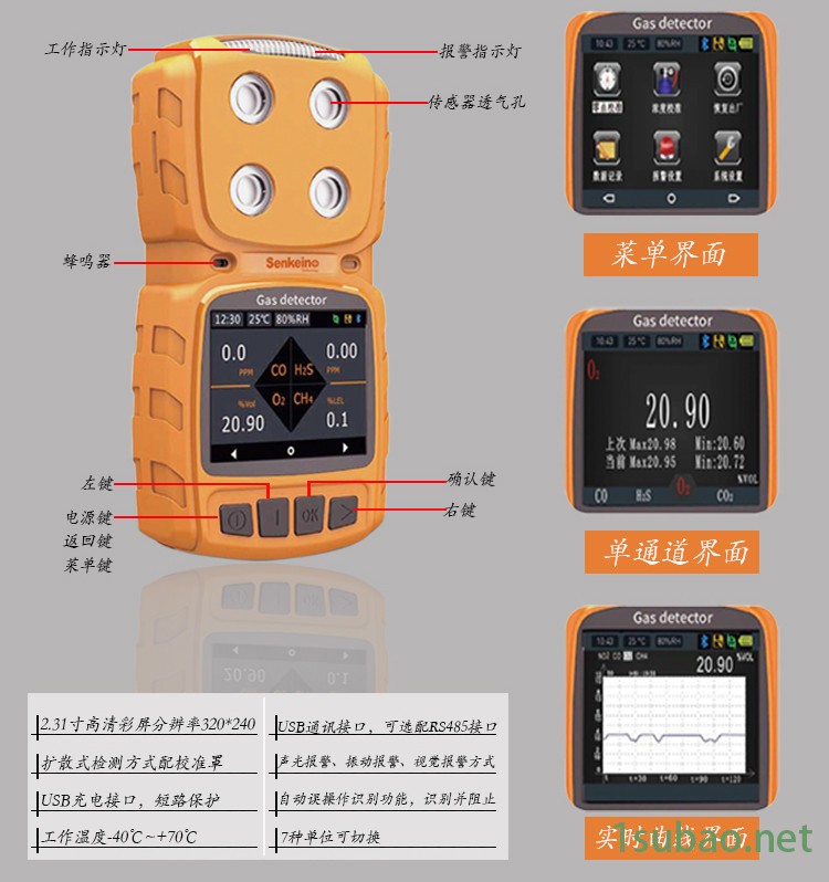 | 原理 | 电化学式气体检测仪 |
