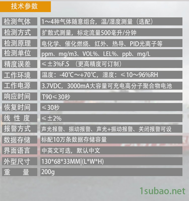 | 检测数量 | 单一气体检测仪 |